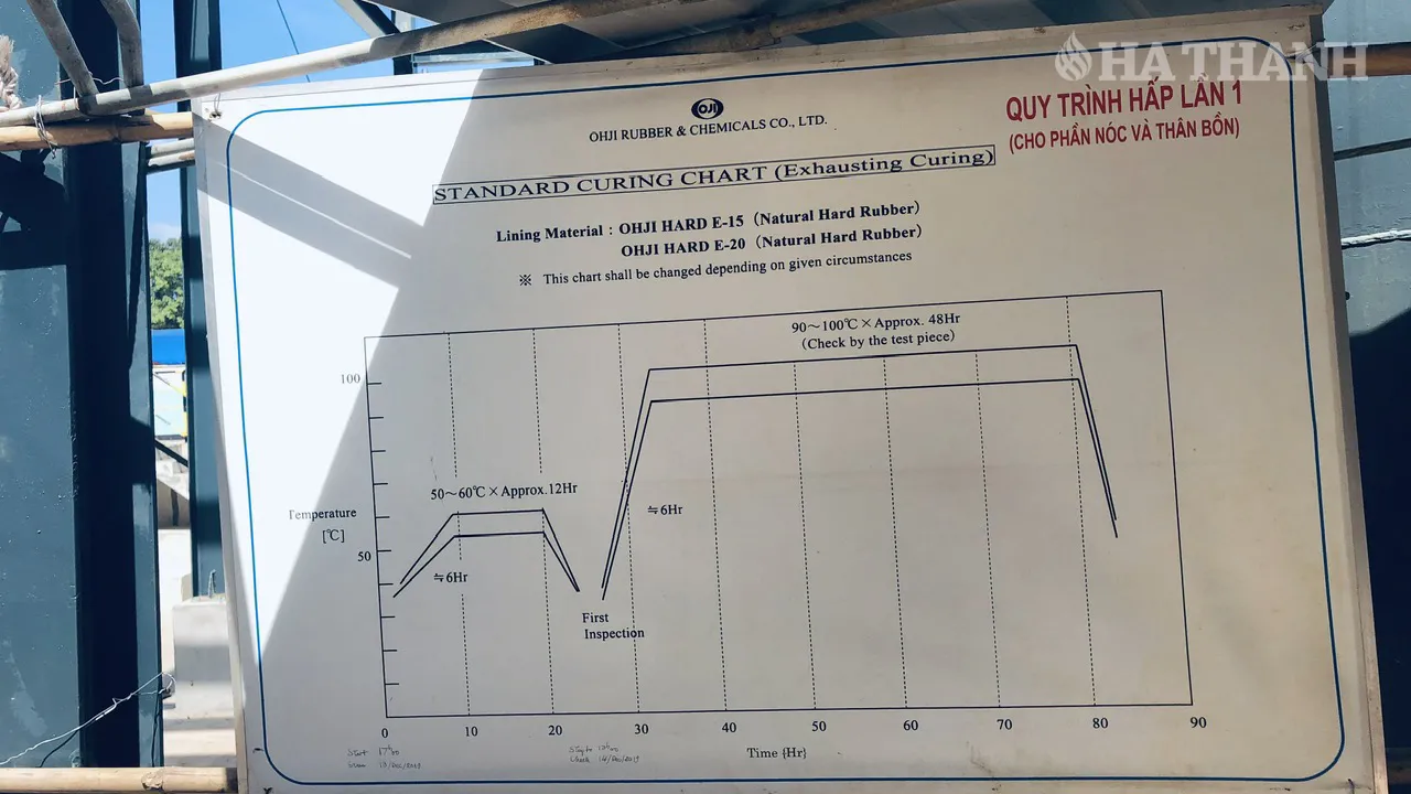 現場で直接加硫したOhji Hard Rubberの適用は、32%塩酸(HCl)に対する優れた防食対策となります。直接加硫により、ゴム同士およびゴムと金属の間の高い硬度と強固な接着が確保されます。そのため、硬質ゴム(Natural Hard Rubber – Type D)は、HCl酸、H₂SO₄、NaOHに対する防食材料の適用において、常に安全で専門的な選択肢となります。