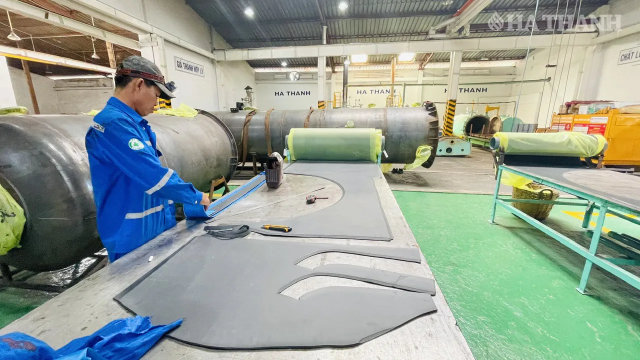 Công ty Hà Thanh ứng dụng độc quyền công nghệ, vật liệu, kỹ thuật quy trình lót dán cao su từ OHJI Japan cung cấp dịch vụ trọn gói từ cao su đến thi công hoàn thiện công trình.