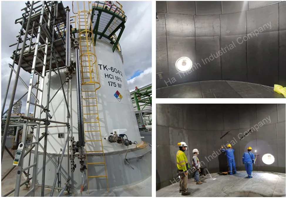 Tháng 02/2021, Hà Thanh hoàn thành lót dán cao su kháng hóa chất cho bồn HCL (nồng độ dung dịch 18%, nhiệt độ hoạt động 65oC) tại nhà máy hóa dầu Long Sơn.