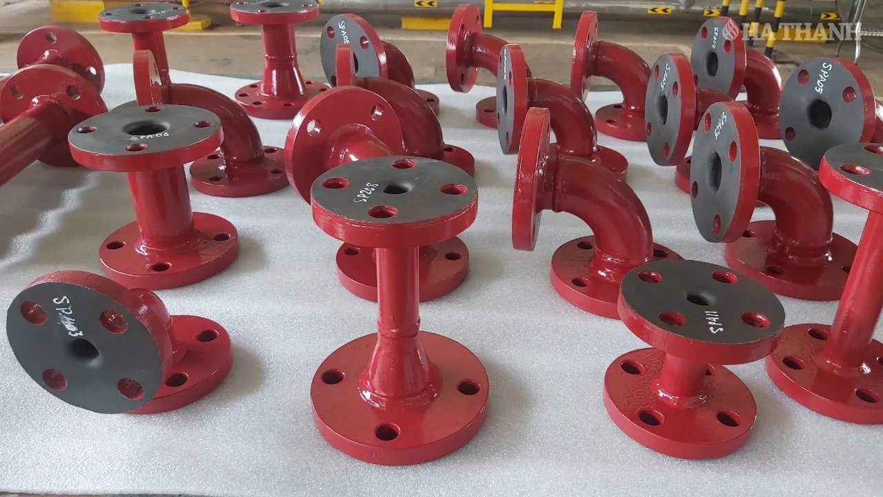 Hà Thanh cung cấp dịch vụ dán nóng cao su chống ăn mòn bên trong các loại ống thép tiêu chuẩn từ size DN25 đến size DN2500 hoạt động trong môi trường ăn mòn, mài mòn bởi các dung dịch hữu cơ và vô cơ có nồng độ, nhiệt độ, nước mặn, chất lỏng, khí và nhiệt độ cao và va đập mạnh ứng dụng trong các nhà máy sản xuất hóa chất, thực phẩm, dầu mỏ, luyện cán thép, điện, khai thác khoáng sản, đóng tàu…