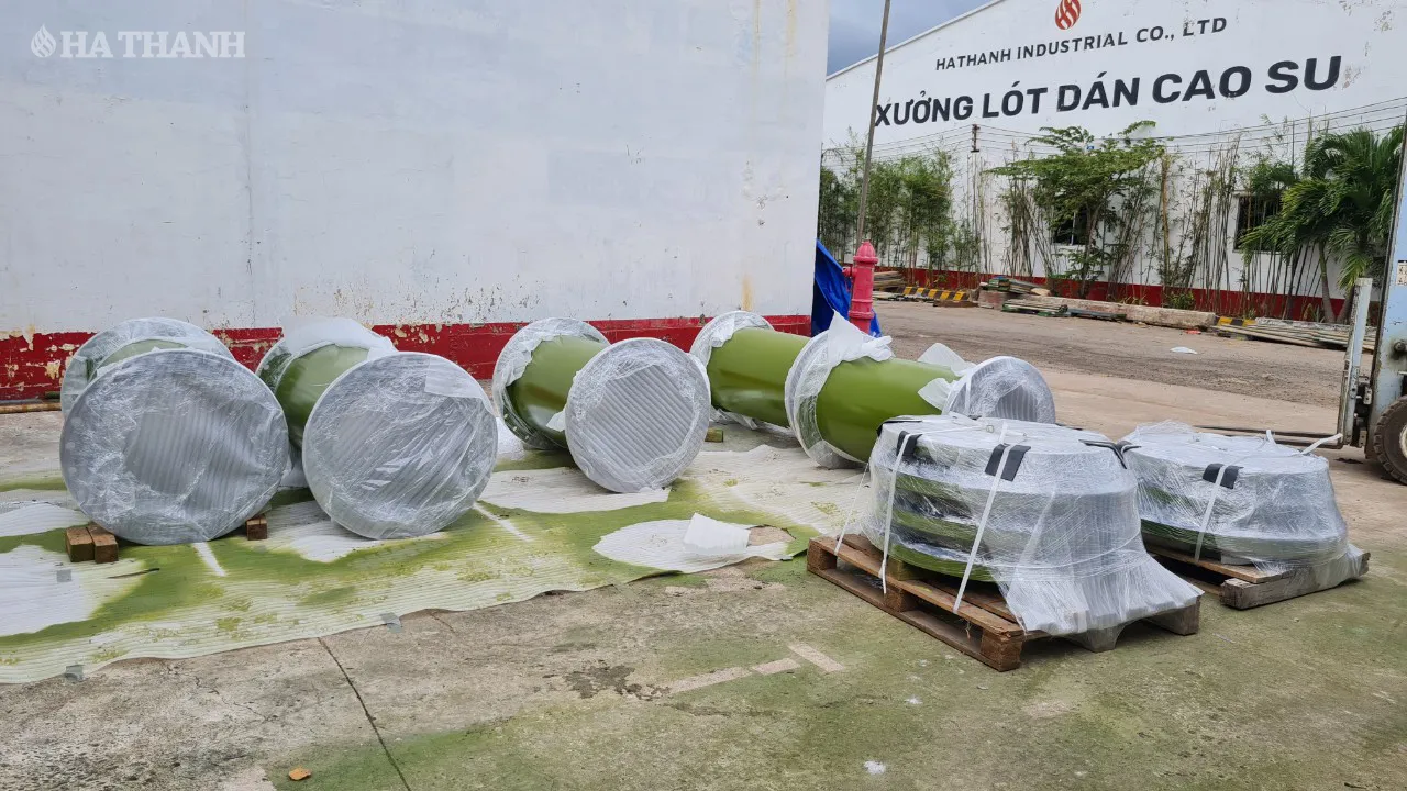 Hà Thanh chuyên lót cao su Neoprene cho các ống tuần hoàn có đường kính lớn và dài với số lượng lớn. Quá trình lưu hóa nóng được thực hiện trong nồi hấp, đảm bảo chất lượng sản phẩm đạt tiêu chuẩn cao nhất. -